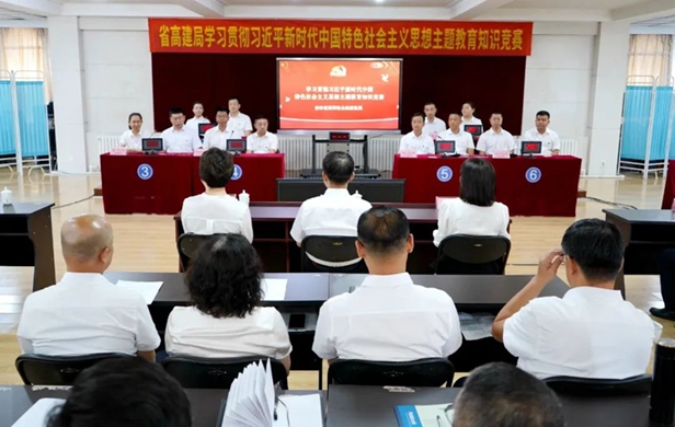 为扎实推进学习贯彻习近平新时代中国特色社会主义思想主题教育走深走实、入脑入心,进一步营造深入学习、系统领会的浓厚氛围,7月12日下午,省高建局举办学习贯彻习近平新时代中国特色社会主义思想主题教育知识竞赛。省高建局局长赵福臣出席活动。厅主题教育第二联络组、厅直机关党委派员到场指导。全局干部职工现场观摩学习。