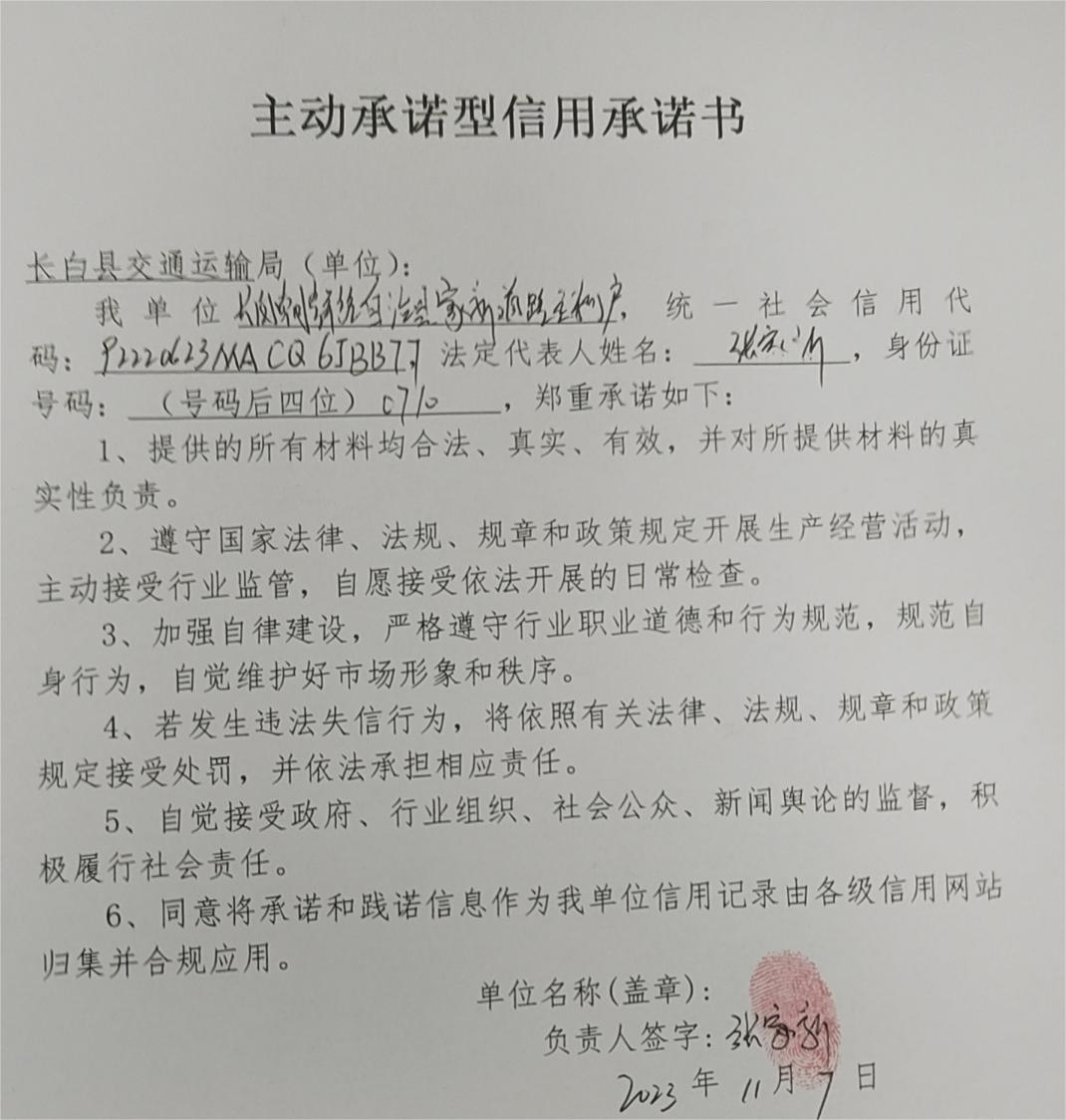 长白朝鲜族自治县家新道路运输户